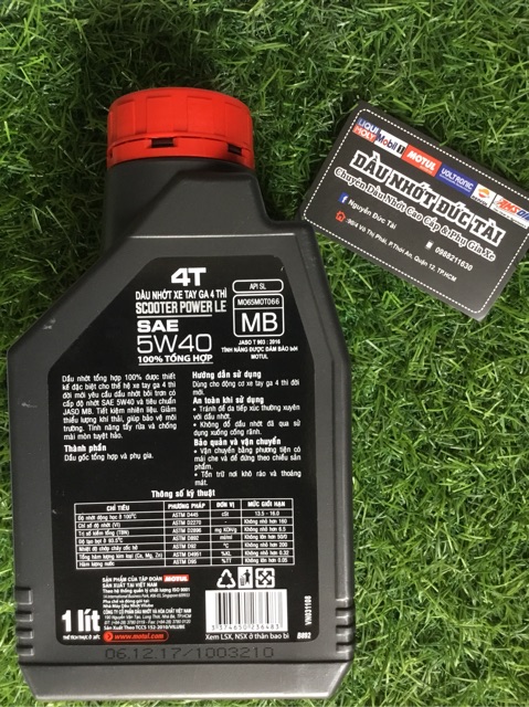 Ô tô > Dầu nhớt và phụ gia ô tô > Mỡ & Chất bôi trơn || Nhớt Motul Scooter Power LE 5W40 dành cho xe ga 1LCòn hàng