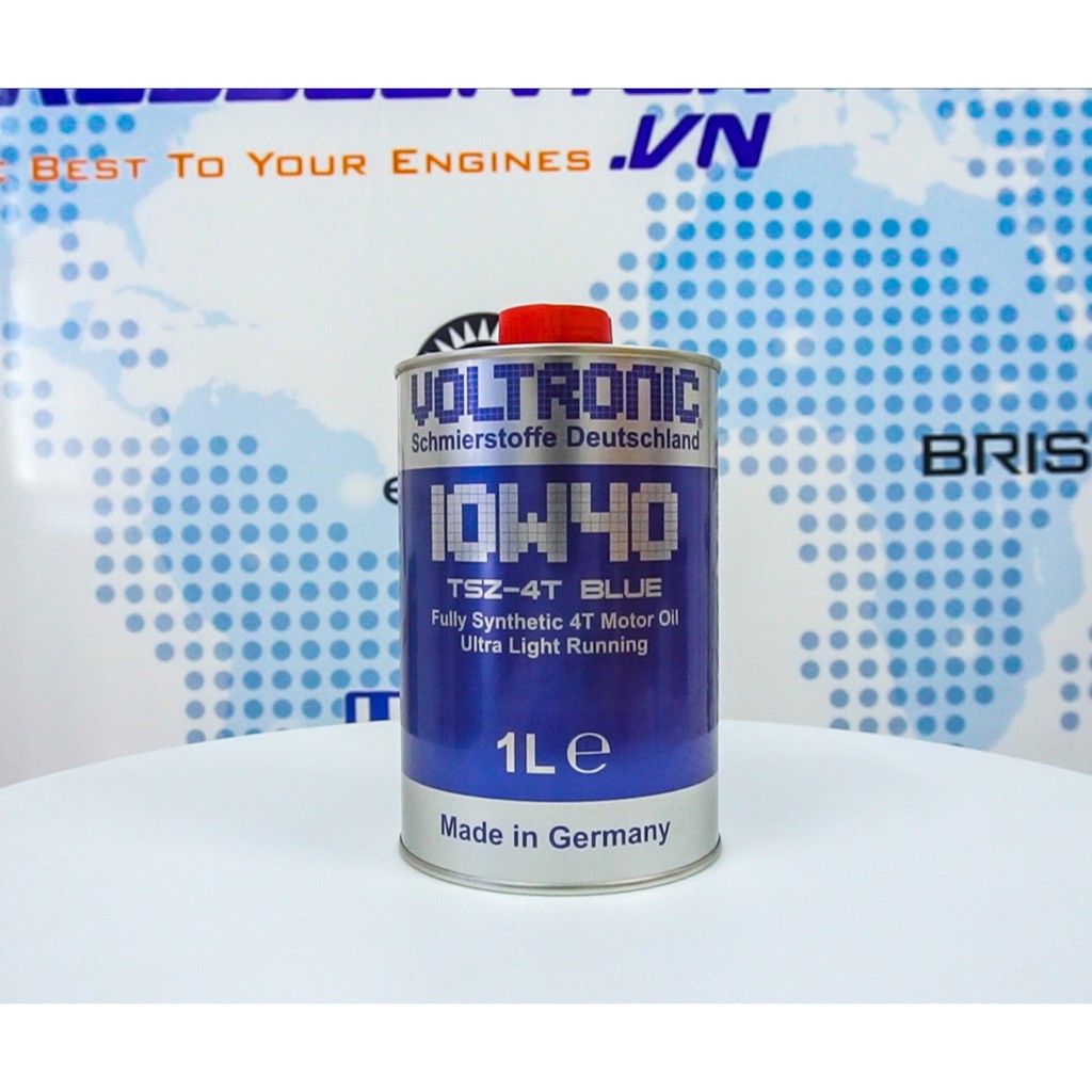 VOLTRONIC ® 10W40 TSZ-4T BLUE is high performance fully synthetic 4T motor oil for high performance 4 strokes motorcycle and scooter engines which required JASO MA2 standard motor oil. Features ▪ The original motor oil made in Germany. ▪ With ESTER Formula, excellent engine lubrication and protection to meet all terrain driving conditions e.g. stop-and-go traffic, acceleration as well constant speed touring. ▪ High shear stability, maintain oil film and oil pressure at high power and high temperature. ▪ Ultra-light running. ▪ Excellent fuel economy. ▪ Special motor oil for wet clutch, resist clutch slippage at high revs and high power. ▪ Promote smooth shifting. ▪ Protect gearbox from pitting. ▪ Suitable for catalytic converter. Application Special motor oil for high performance 4T motorcycle and scooter with wet clutch system, meet requirements BMW, DUCATI, HONDA, KAWASAKI, KTM, PIAGGIO, SUZUKI, YAMAHA and etc.Fully Synthetic( Ester Formula) + Racing Performance API SN