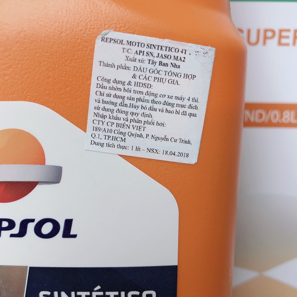 Repsol Sintético 10W40 full tổng hợp được nhập khẩu trực tiếp từ Tây Ban Nha với chất lượng vượt trội đã được khẳng định qua các đội đua của Honda tại Moto GP.Sản phấm 100% tổng hợp. Tính năng chống quá nhiệt tuyệt vời chống lại hiện tượng oxy hóa và chống mài mòn động cơ tốt hơn. Đạt tiêu chuẩn JASO MA2 giúp bộ ly hợp hoạt động hiệu quả hơn.