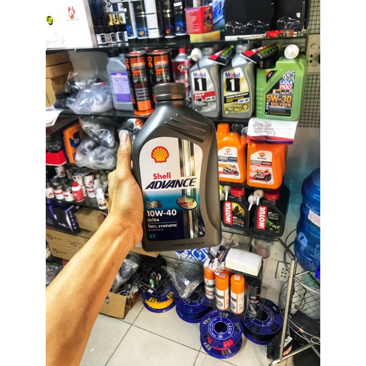 Nhớt Shell Advance Ultra 10W40 1LNhớt Shell Advance Ultra 10W40 1L là sự kết hợp hoàn hảo từ công nghệ R.C.E và thực tế dựa trên sự hợp tác và nghiên cứu kĩ thuật của tập đoàn dầu nhớt Shell và các đội đua xe mô tô trứ danh nhằm mang lại sự bảo vệ và vận hành tối ưu giúp kéo dài tuổi thọ động cơ, tăng khả năng kiểm soát tốt hơn với sự sang số êm hơn và trải nghiệm lái xe đầy hứng thú nhờ giảm tiếng ồn và rung động.