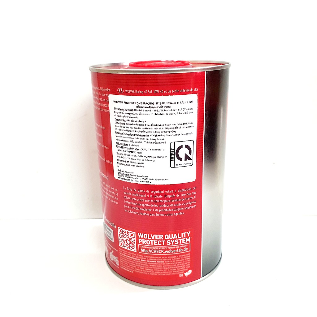 - Nhớt Wolver Racing 4T tổng hợp 10W40 ứng dụng công nghệ tổng hợp hoàn hảo được nhập khẩu từ Đức. với công thức pha chế phụ gia đủ tiêu chuẩn, có thể đáp ứng các yêu cầu kỹ thuật của những thế hệ động cơ đời mới nhất, với tính năng bảo vệ chống mài mòn, chống giảm áp suất dầu và hiện tượng oxy hóa ở nhiệt độ cao.