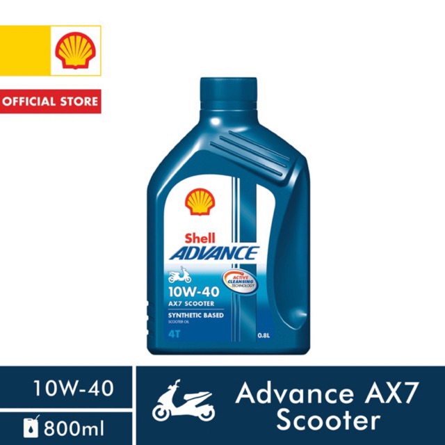 Giới thiệu sản phẩm Nhớt xe tay ga cao cấp Shell ADVANCE AX7 SCOOTER 10W40 800mlShell Advance AX7 Scooter 10W40 - Nhớt cao cấp chuyên dụng cho xe tay ga 4 thì đời mới