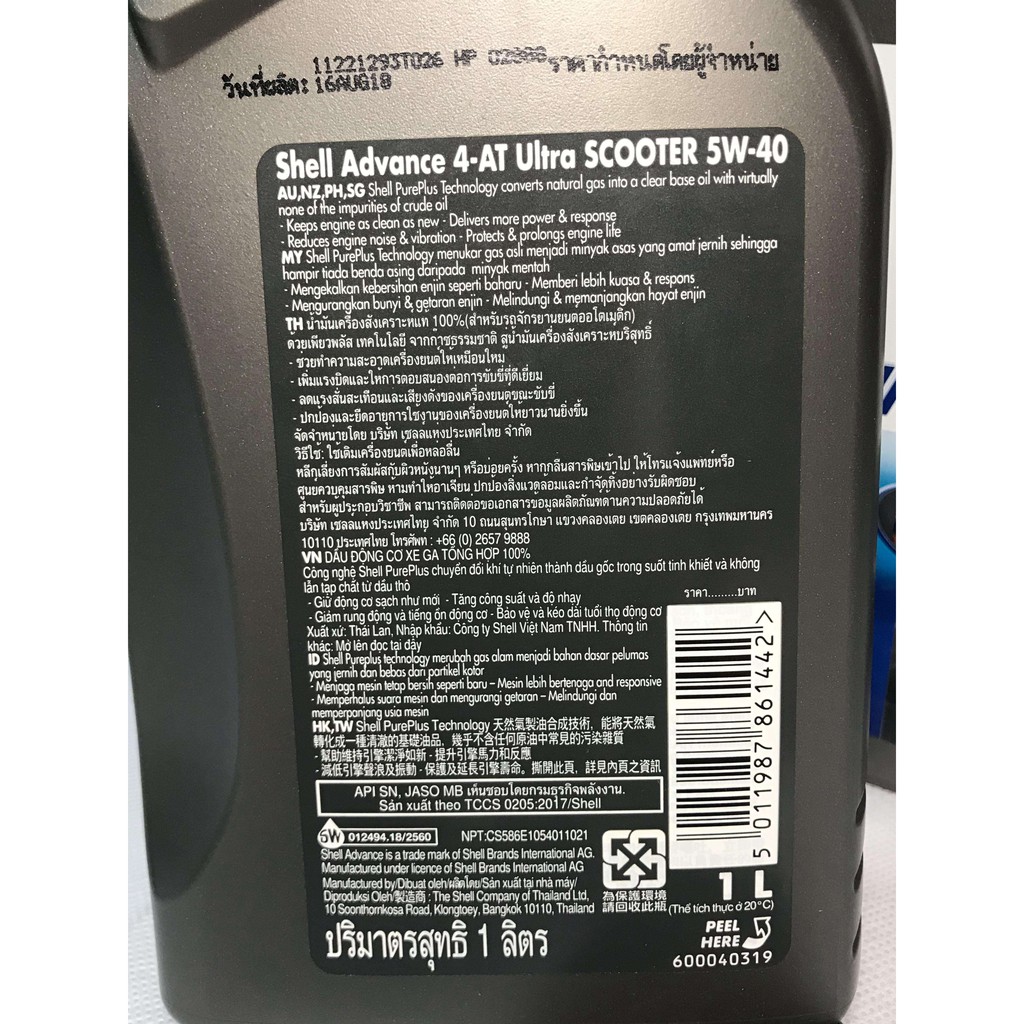 Dầu Nhớt Shell Advance Ultra Scooter 5W40 1LSản xuất: Thái Lan