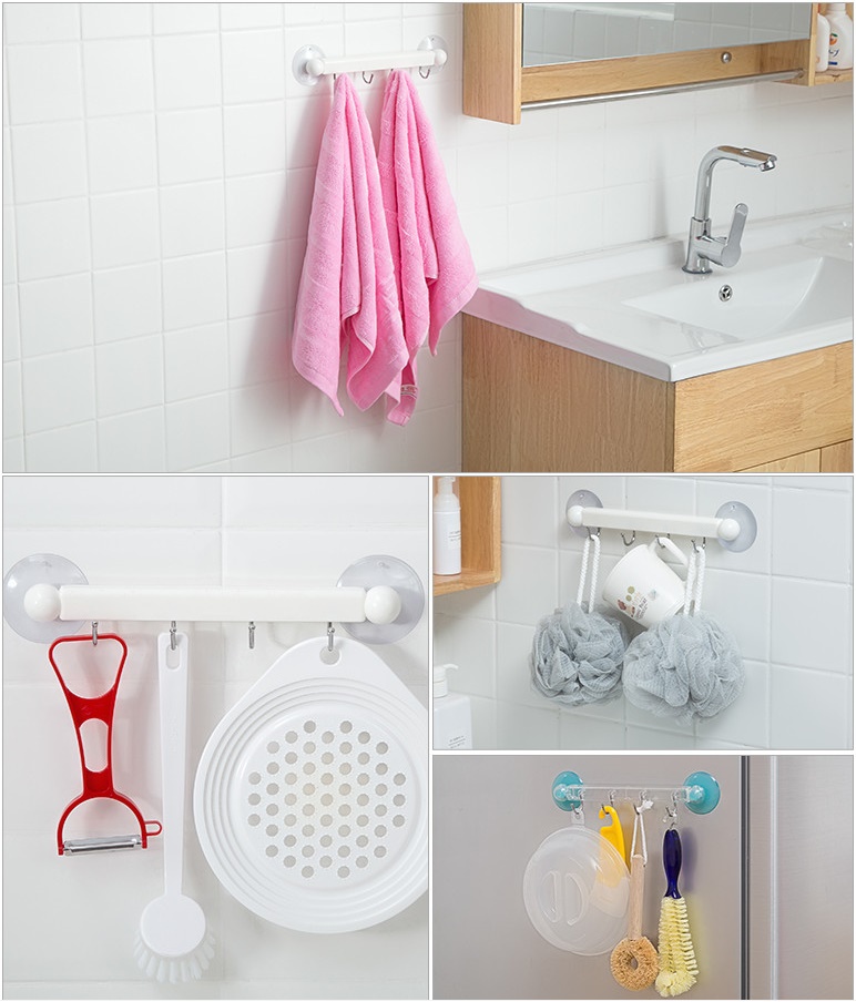 Thanh nhựa 4 móc treo đồ núm hít chân không - New