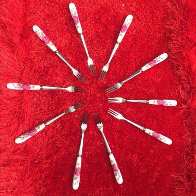 Giới thiệu Nĩa cán sứ ăn hoa quả xinh xinh 15cm