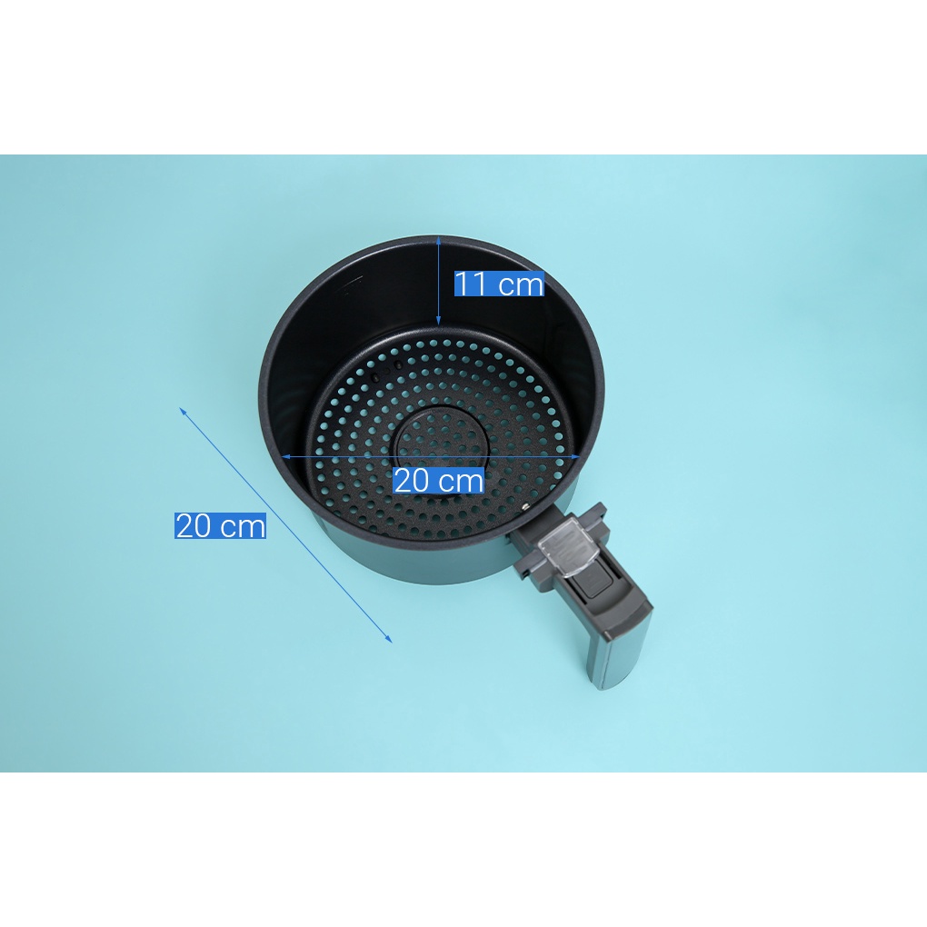 ●Khay hứng dầu và rổ chiên làm bằng thép không gỉ chống dính hạn chế dính cháy, an toàn khi nấu nướng, dễ dàng vệ sinh