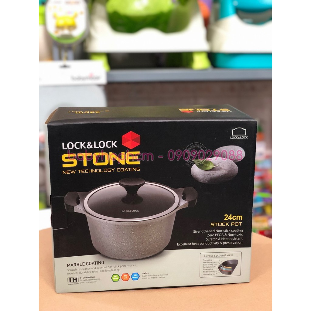 Nồi Đá Lock&Lock Stone LCA6244D 2 Tay Cầm 24cm Thân Cao (Có thể sử dụng bếp từ)---------