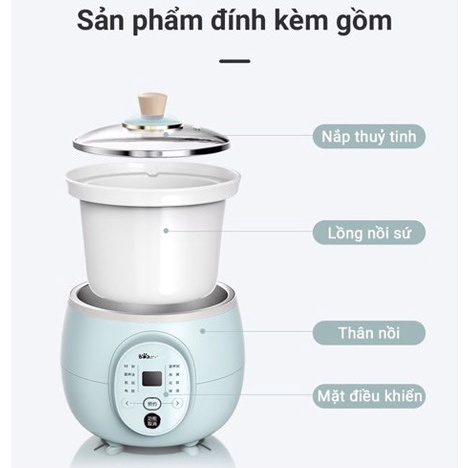 Giới thiệu Nồi Nấu Cháo Chậm 2L Cho Bé, Ninh, Hầm, Cách Thủy 4 in 1 Bear Chính Hãng Quốc Tế DDG-D20P1 - Bảo Hành 18 Tháng