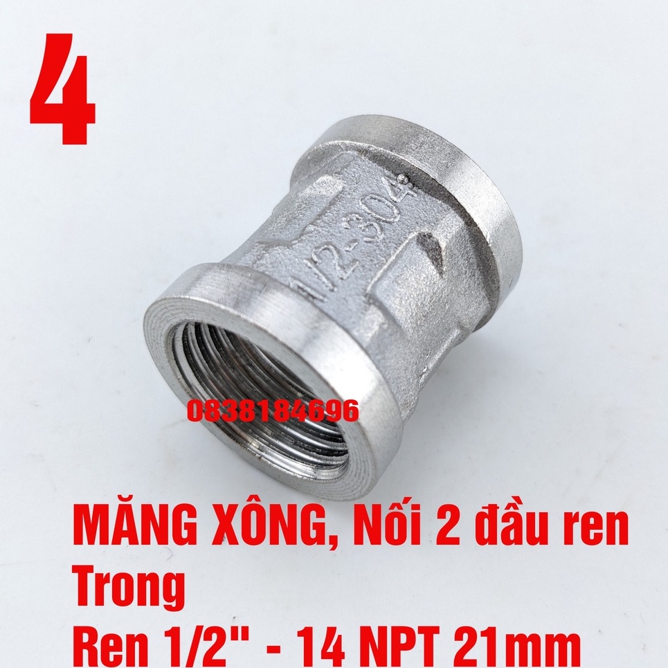 NỐI 2 ĐẦU RĂNG TRONG PHI 21 INOX, LOẠI DÀY. Măng xông Inox, đầu nối răng trong 21mm,2 đầu ren trong NK04