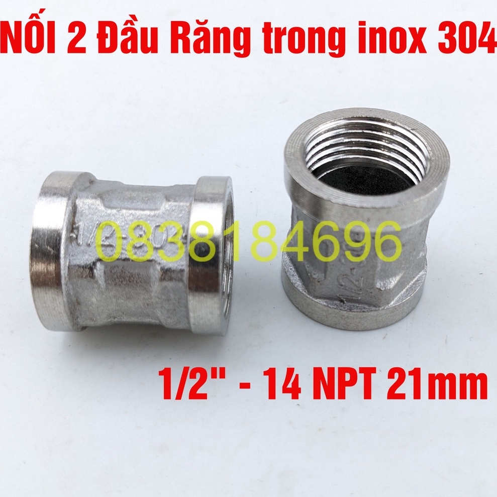 NỐI 2 ĐẦU RĂNG TRONG PHI 21 INOX, LOẠI DÀY. Măng xông Inox, đầu nối răng trong 21mm 1/2" - 14 NPTCHUẨN THUỚC ĐO 20MM (21 THÔNG DỤNG) 25MM ( 27 THÔNG DỤNG) hệ ren 1/2 Lựa chọn Theo Số