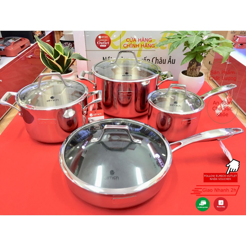 Nhà cửa & Đời sống > Dụng cụ nhà bếp > Nồi || Bộ Nồi 4 Chiếc Inox 304 3 Lớp Đáy Liền ELMICH Potenza EL3256/3257/3258 Size 16/20/24 Chảo 26cmCòn hàng