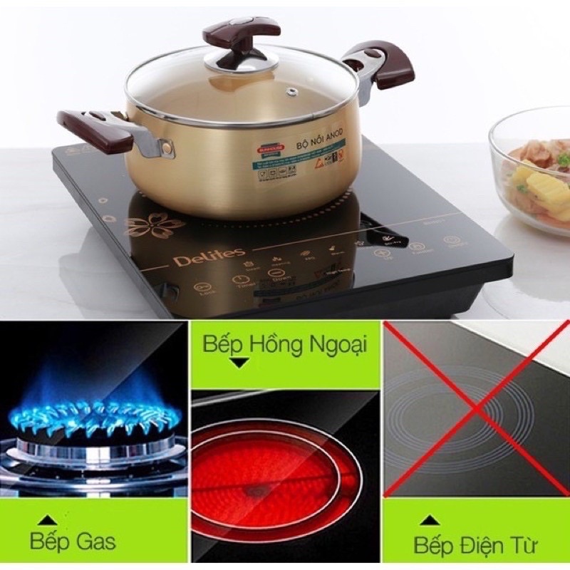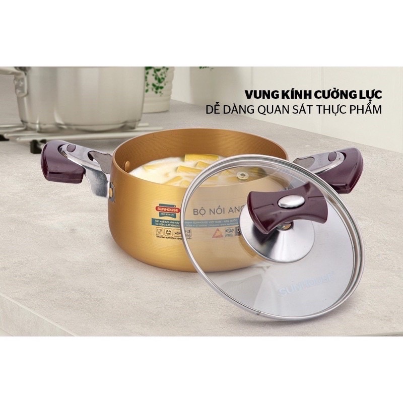 Bộ nồi Anod Sunhouse SH6634 chất liệu hợp kim nhôm dùng bếp gas bếp hồng ngoại