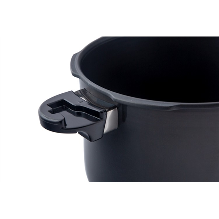 Nồi áp suất anod Sunhouse LC600 có tay cầm bằng nhựa chịu nhiệt cao, cách nhiệt tốt, thiết kế to bản rất dễ nâng nhấc. Ngoài ra, trên tay cầm còn có khóa đóng mở nắp được thiết kế dạng nút bấm bập bênh, thao tác đóng mở nắp rất dễ dàng không chỉ đảm bảo an toàn mà còn rất tiện dụng.