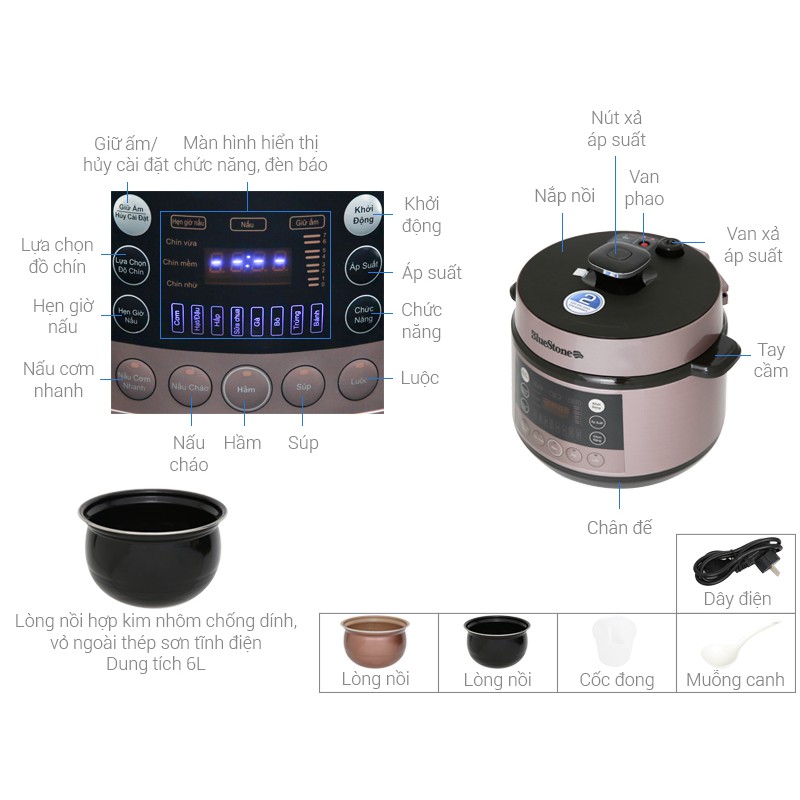 Giới thiệu [Mã ELHADEV giảm 4% đơn 300K] Nồi áp suất điện Bluestone PCB-5763 5 lít