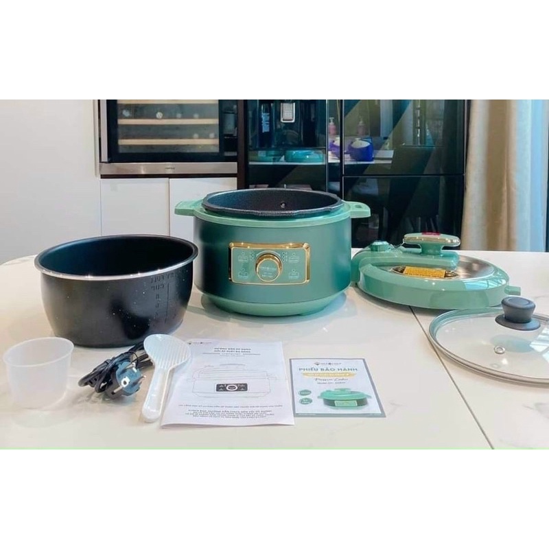 - Lần đầu tiên có 1 chiếc nồi áp suất ( hầm cháo, hầm xương củ quả, hầm thịt... cực kỳ nhanh) lại có thể chiên xào, nấu cơm, và tích hợp nấu nẫu được ( vì có tặng kèm chiếc nắp đậy thứ 2)