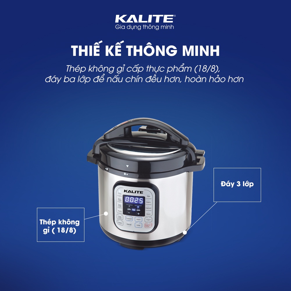 – Nồi áp suất điện Kalite có thể tiết kiệm tối đa thời gian và năng lượng (nấu nhanh hơn 2- 6 lần), giữ nhiệt độ ổn định mà không tiêu tốn quá nhiều điện năng.