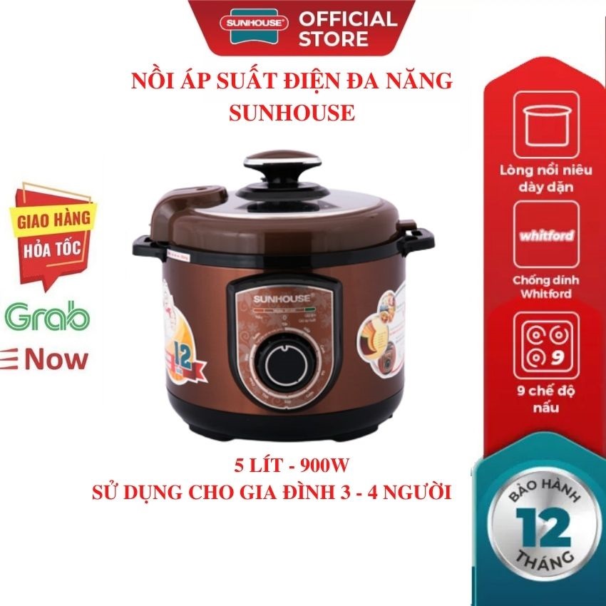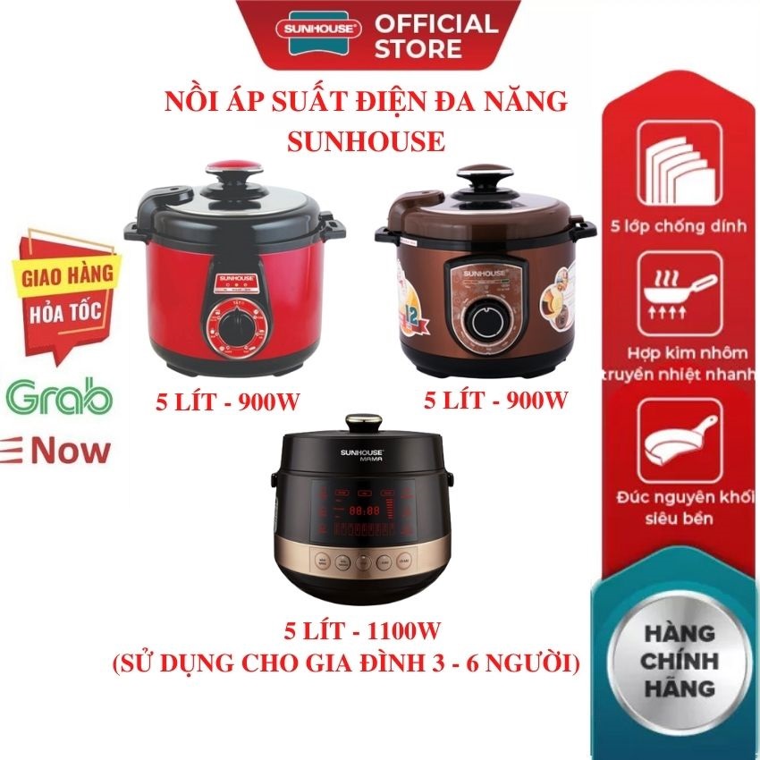 Thiết Bị Điện Gia Dụng > Đồ gia dụng nhà bếp > Nồi áp suất || Nồi áp suất điện đa năng SUNHOUSE 5 Lít tiện lợi an toàn lòng nồi chống dính dùng nấu cơm hầm xương nấu cháo súpCòn hàng