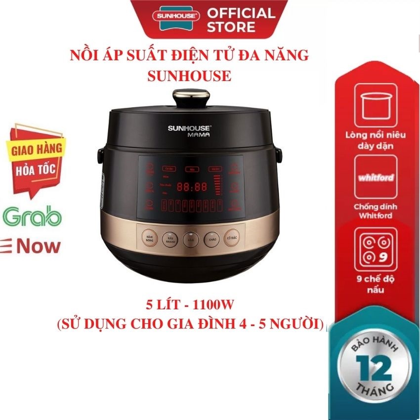Nồi áp suất điện đa năng SUNHOUSE SHD1550-2022 dung tích 5L tiện lợi an toàn lòng nồi chống dính dùng nấu cơm hầm xương
