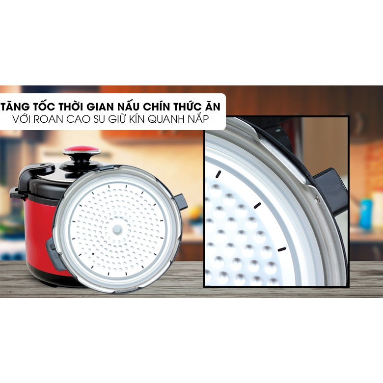 Nắp nồi được thiết kế dày dặn, cấu trúc vòng đệm khít, không làm thất thoát hơi nước, giúp giữ lại chất dinh dưỡng trong thức ăn cũng như bảo đảm an toàn trong quá trình nấu nướng (tránh tràn thực phẩm).