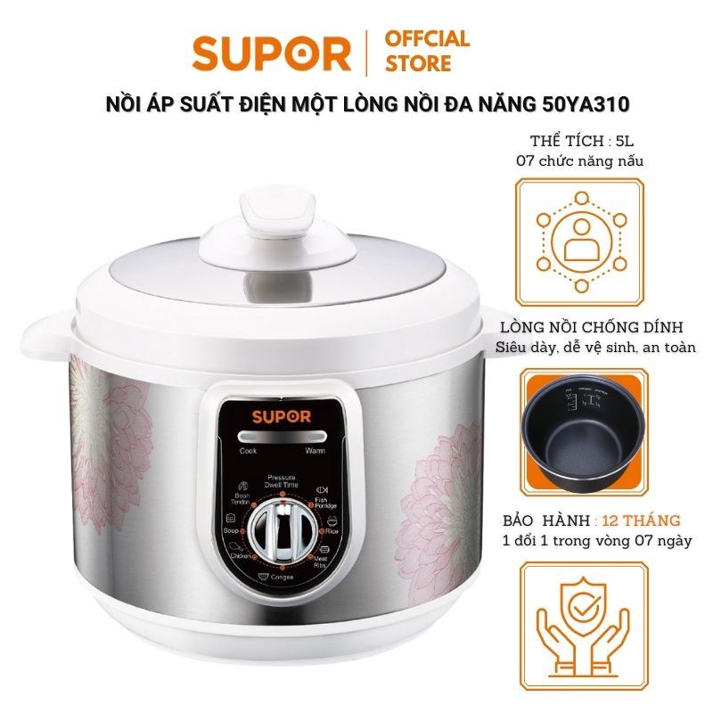 Nồi áp suất điện lòng nồi chống dính Supor SPC50YA310VN siêu bền hàng chính hãng bảo hành 12 tháng toàn quốc