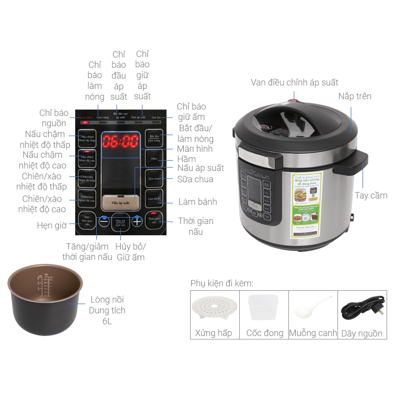 ☛ Nồi áp suất điện với công suất 900 W kèm menu nấu tự động đa dạng