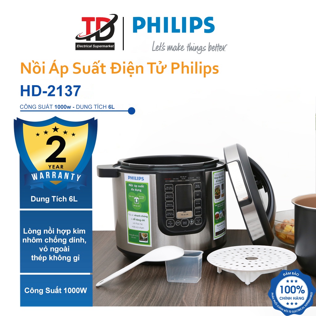 Giới thiệu [Mã ELHAMS5 giảm 6% đơn 300K] Nồi Áp Suất Điện Philips HD2137 - 6Lit/1000W - Bảo Hành Chính Hãng 2 Năm