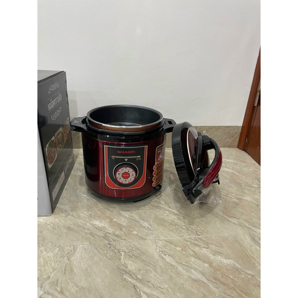 - Nồi áp suất đa năng Sharp KS180S có thiết kế gọn nhỏ, màu đỏ đen sang trọng tinh tế
