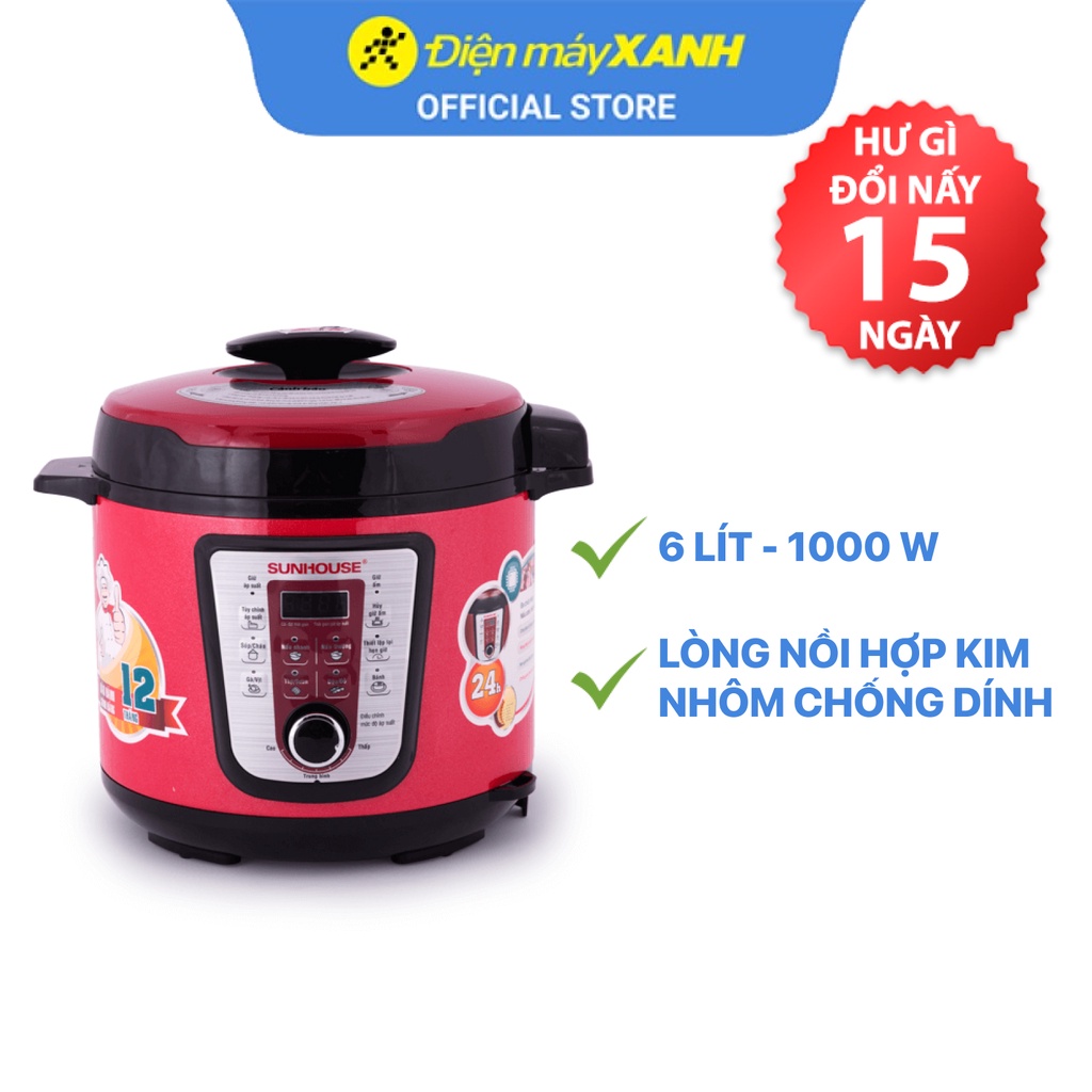 Thiết Bị Điện Gia Dụng > Đồ gia dụng nhà bếp > Nồi áp suất || [Mã ELMALL150 giảm 8% đơn 500K] Nồi áp suất điện Sunhouse SHD 1767 6.0 lítCòn hàng