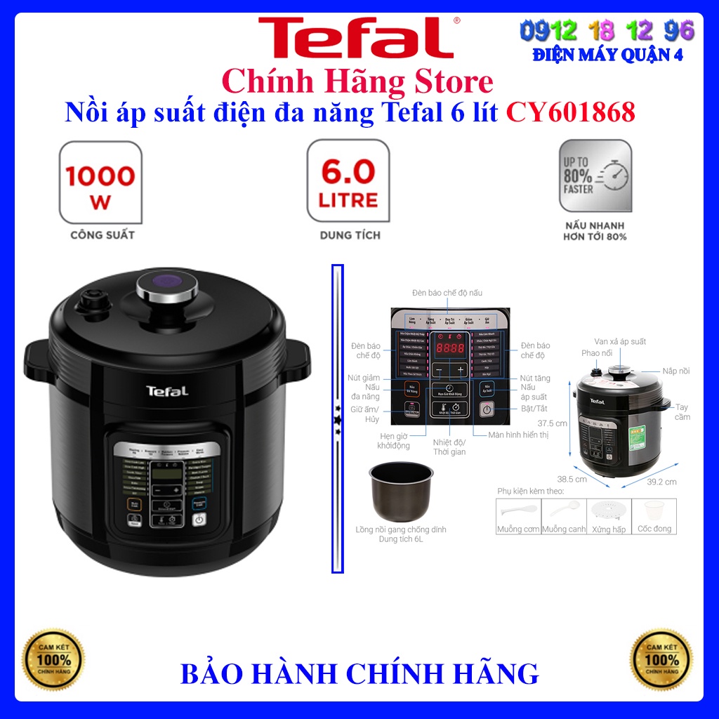 Thiết Bị Điện Gia Dụng > Đồ gia dụng nhà bếp > Nồi áp suất || Nồi áp suất điện Tefal CY601868 6 lítCòn hàng