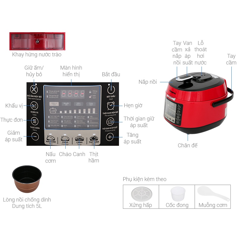 Bạn có thể làm sạch từng bộ phận của nồi áp suất điện Kangaroo KG5P3 một cách dễ dàng theo hướng dẫn như dưới: