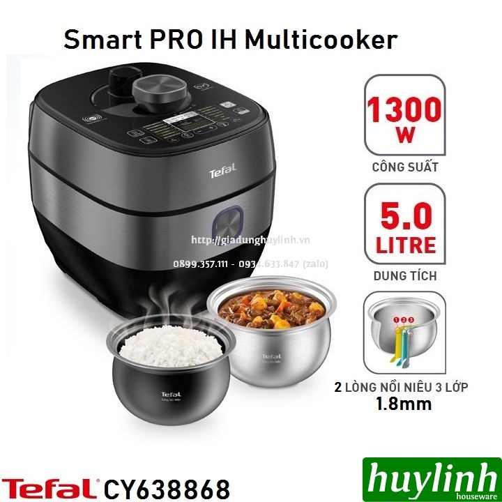 Nồi áp suất Tefal CY625868 là dòng Smart Pro IH Multicooker là dòng nồi áp suất điện từ với hơn 20 chức năng, dung tích 5 lít, cùng công suất 1300WHuy Linh phân phối và bảo hành chính hãng tại Tefal Việt Nam.
