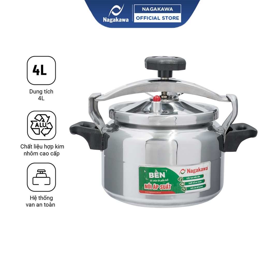 Với dung tích 4 lít, nồi áp suất Nagakawa NAG1441 hỗ trợ bạn nấu cháo, hầm xương, giò, nấu soup cho một gia đình với khoảng 4-5 người ăn.