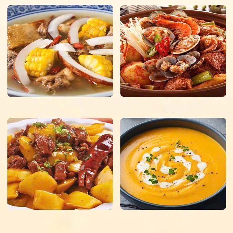 - Nồi Hầm 4 trong 1:Thiết kế đa năng cho việc hầm gà, cháo, nồi chiên và xào nấu.