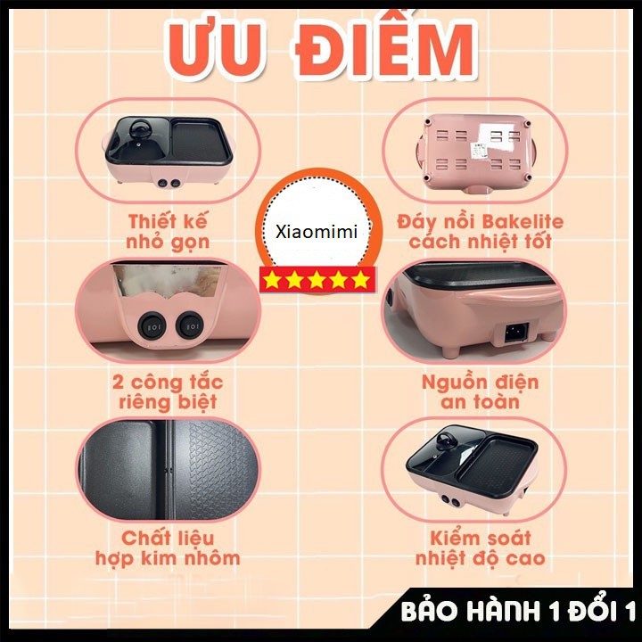 Nồi bếp lẩu nướng Hàn Quốc chống dính đa năng cao cấp XIAOMIMI SD833