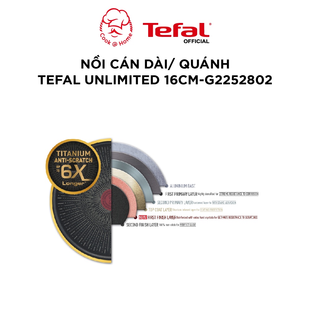 Nồi cán dài Tefal có lớp phủ Titanium Anti-Scratch bền chắc với hơn 100.000 lần chà nhám