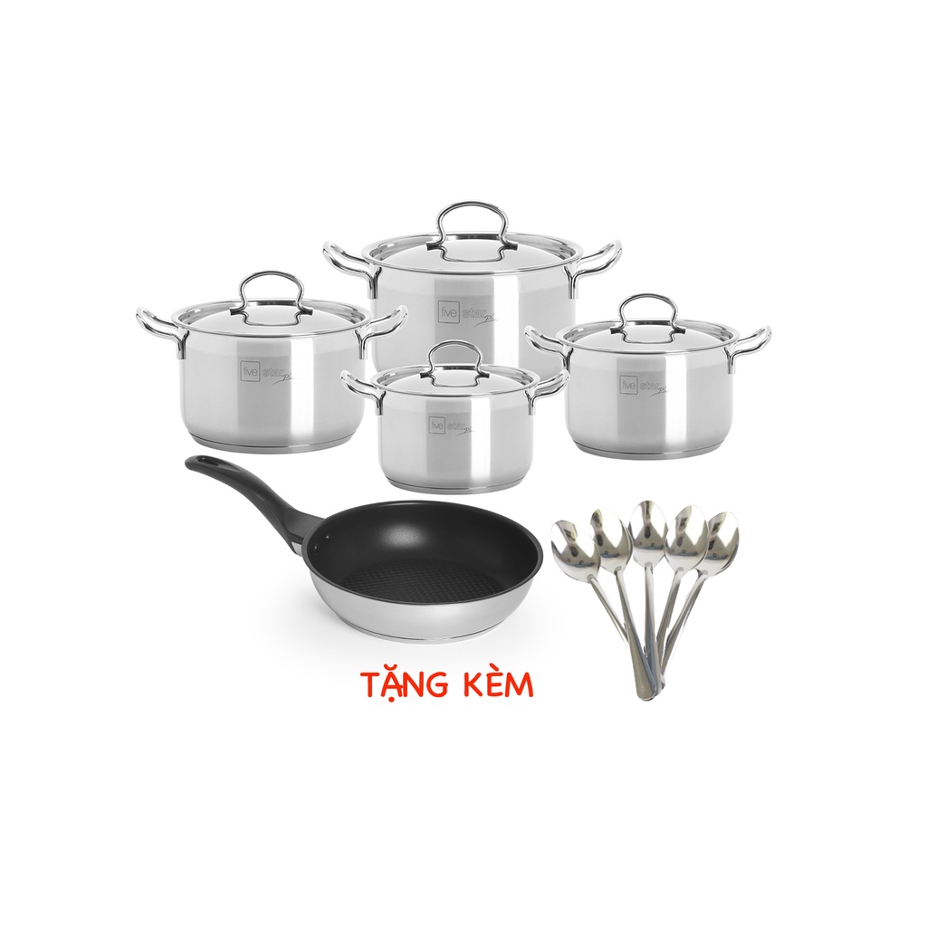 Bộ nồi chảo 3 đáy inox 304 FiveStar Plus vancover bếp từ nắp inox ( 1nồi16cm x 1nồi18cm x 1nồi20cmx 1nồi24cm x 1chảo24cm