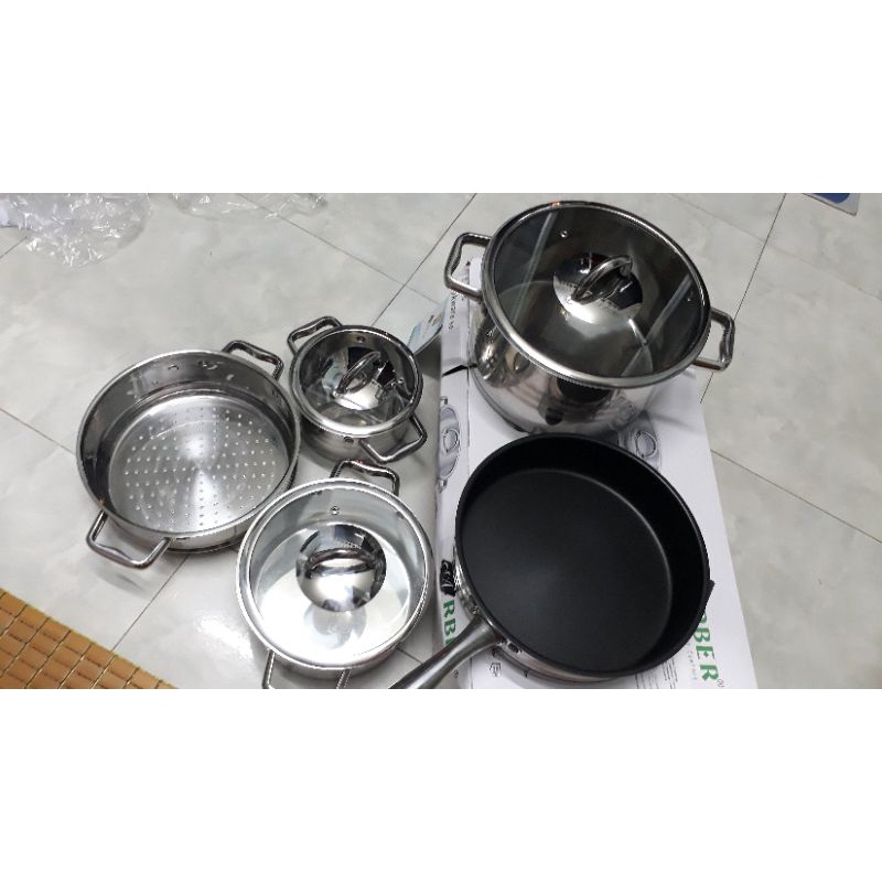 Bộ nồi chảo 5 món ARBER AN05IVHChất liệu: Inox 304.