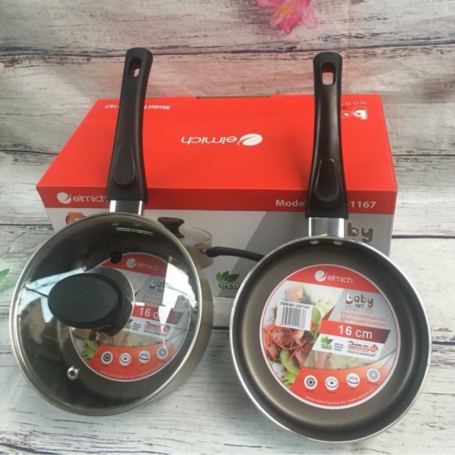Nhà cửa & Đời sống > Dụng cụ nhà bếp > Chảo || Bộ nồi chảo chống dính elmich baby chảo 16cm nồi 16cm EL1167Còn hàng