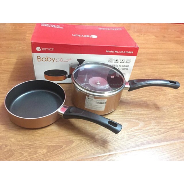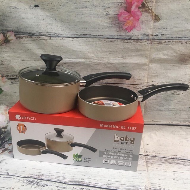 Bộ nồi chảo chống dính elmich baby chảo 16cm nồi 16cm EL1167