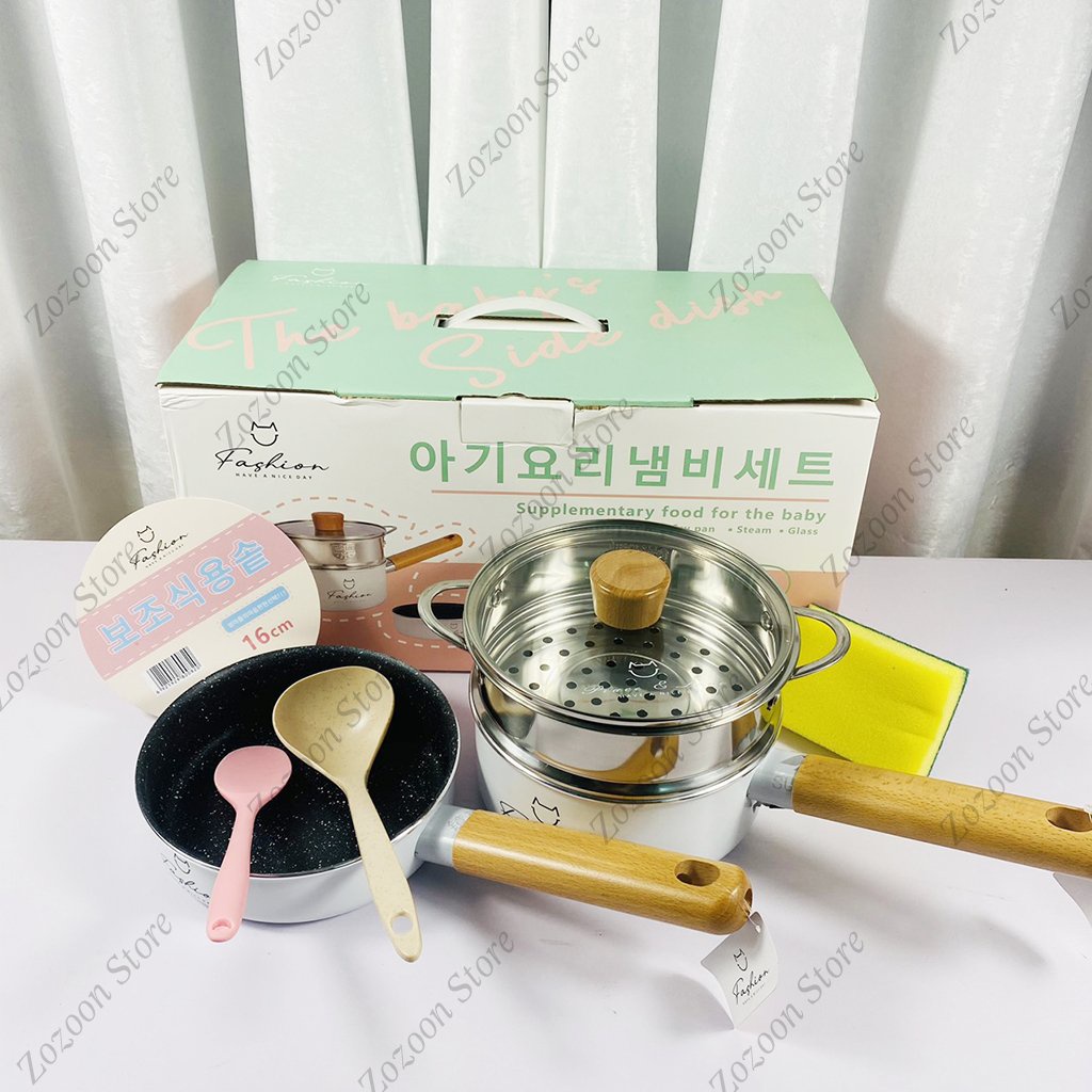 Bộ nồi ăn dặm nấu cháo bột + chảo kèm xửng hấp cho bé FASHION cao cấp