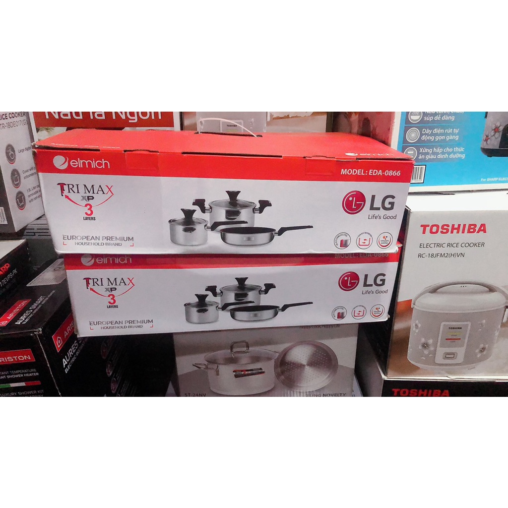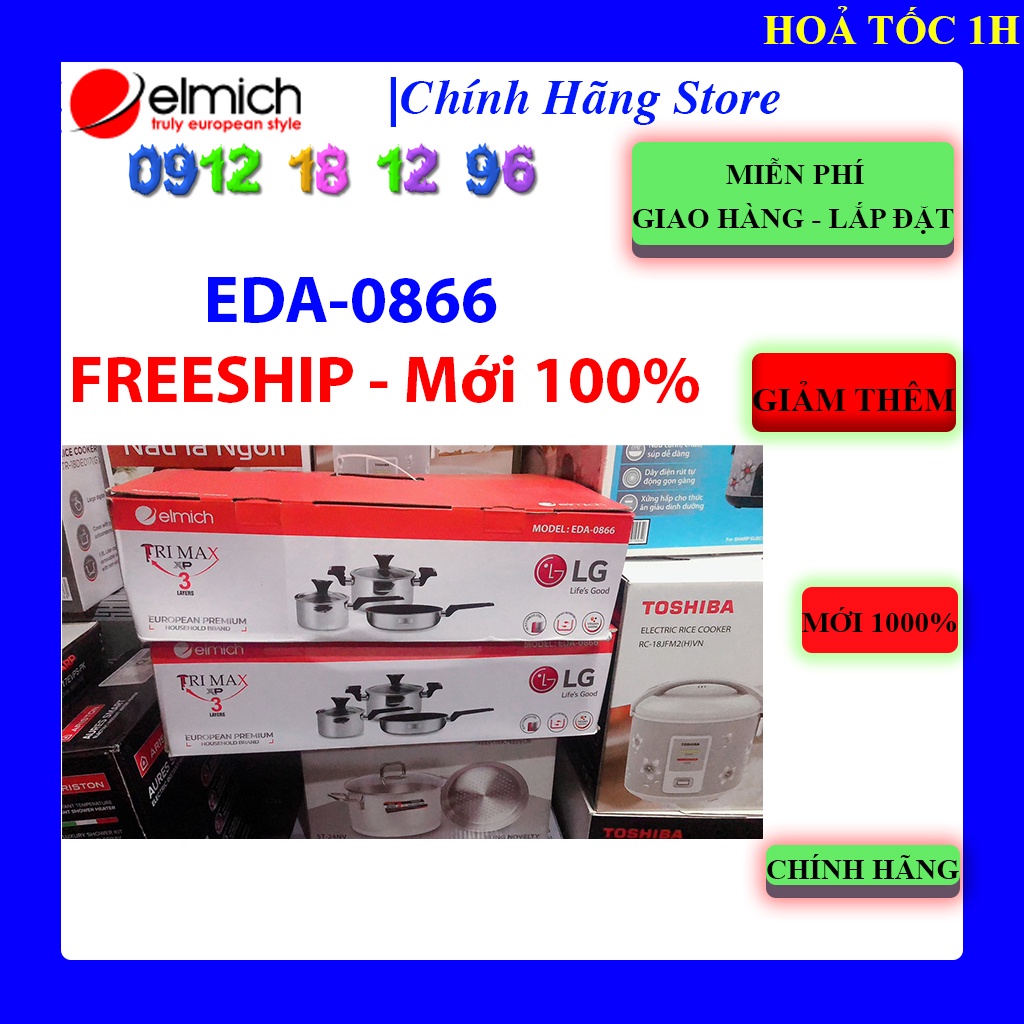 Nhà cửa & Đời sống > Dụng cụ nhà bếp > Nồi || Bộ nồi chảo inox 3 lớp đáy liền cao cấp Elmich EDA-0866 (Quánh 16, nồi 20, chảo 24cm)Còn hàng