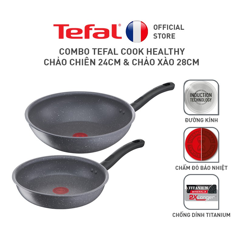 Nhà cửa & Đời sống > Dụng cụ nhà bếp > Chảo || [Mã LIFETEFAL253 giảm 12% đơn 350K] Bộ nồi chảo Tefal Cook Healthy 2pcs (Chảo 24/Chảo xào 28)Còn hàng