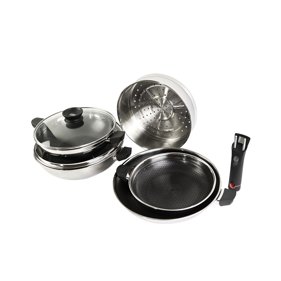 Kết cấu 3 lớp đúc liền dẫn nhiệt đều và nhanh mang đến những món ăn trọn vẹn hương vị tươi ngon và tốt cho sức khỏe cả gia đình. Tay cầm tháo rời giúp dễ dàng chùi rửa, giảm thiểu vướng víu khi nấu ăn và tiết kiệm không gian cất trữ.