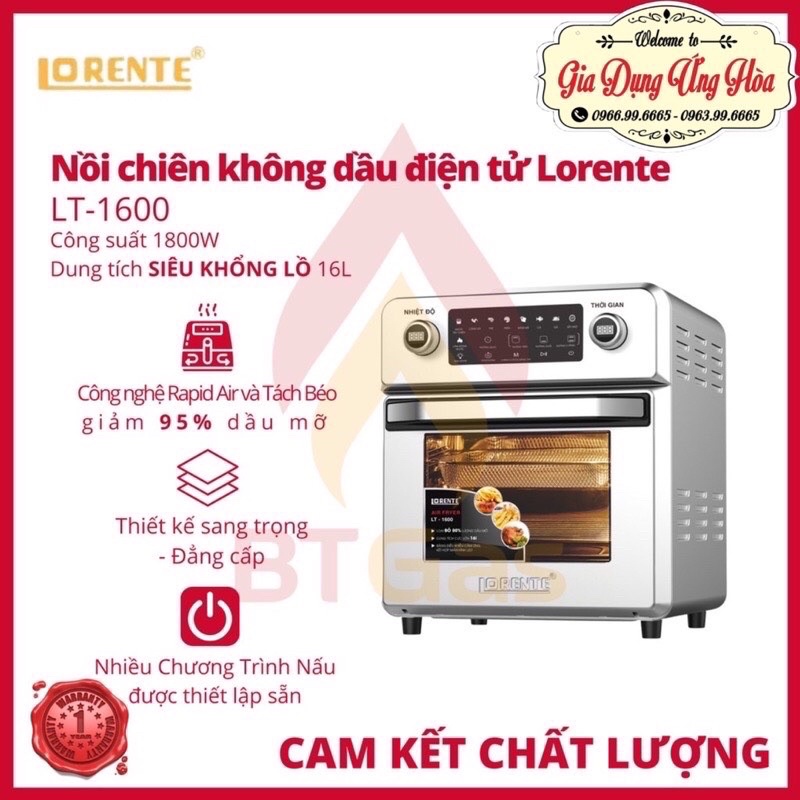 Thiết Bị Điện Gia Dụng > Đồ gia dụng nhà bếp > Nồi chiên không dầu || Nồi Chiên Không Dầu 16L Lorente LT 1600- Điều Khiển Cảm Ứng-8 Chế Độ Cài Đặt SẵnCòn hàng