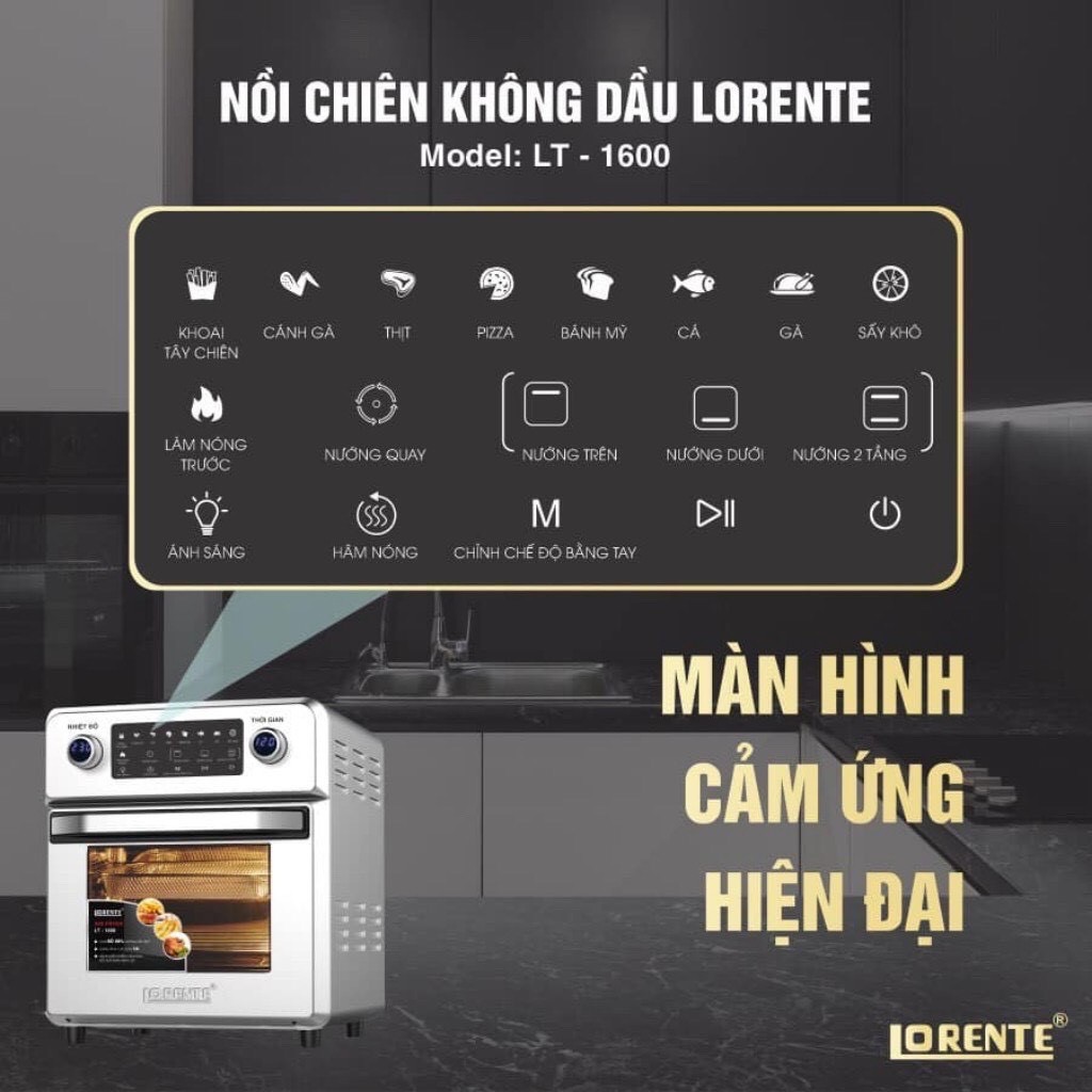 Nồi Chiên Không Dầu 16L Lorente LT 1600 - Điều Khiển Cảm Ứng - 8 Chế Độ Cài Đặt Sẵn