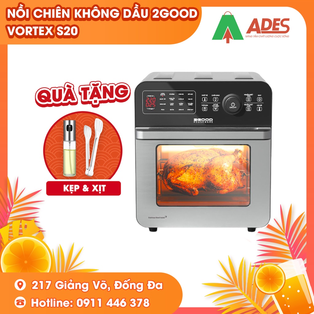 Nồi Chiên Không Dầu 2Good Vortex S20 - BẢO HÀNH CHÍNH HÃNG 12 THÁNG - KHÔNG RỈ - DUNG TÍCH LỚN