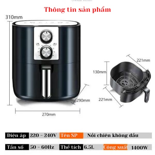 Nồi chiên không dầu 6.5L, Bảo hàng chính hãng, có ảnh thật