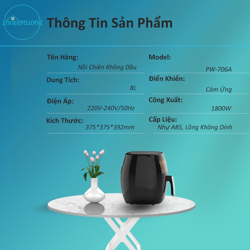 Thiết Bị Điện Gia Dụng > Đồ gia dụng nhà bếp > Nồi chiên không dầu || [Mã ELHADEV giảm 4% đơn 300K] Nồi Chiên Không Dầu 8L mobell PW-706A Màn Hình LED Cảm Ứng Cửa Kính Trong Suốt 1800WCòn hàng