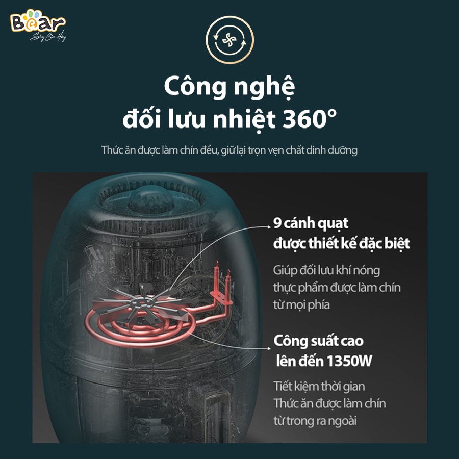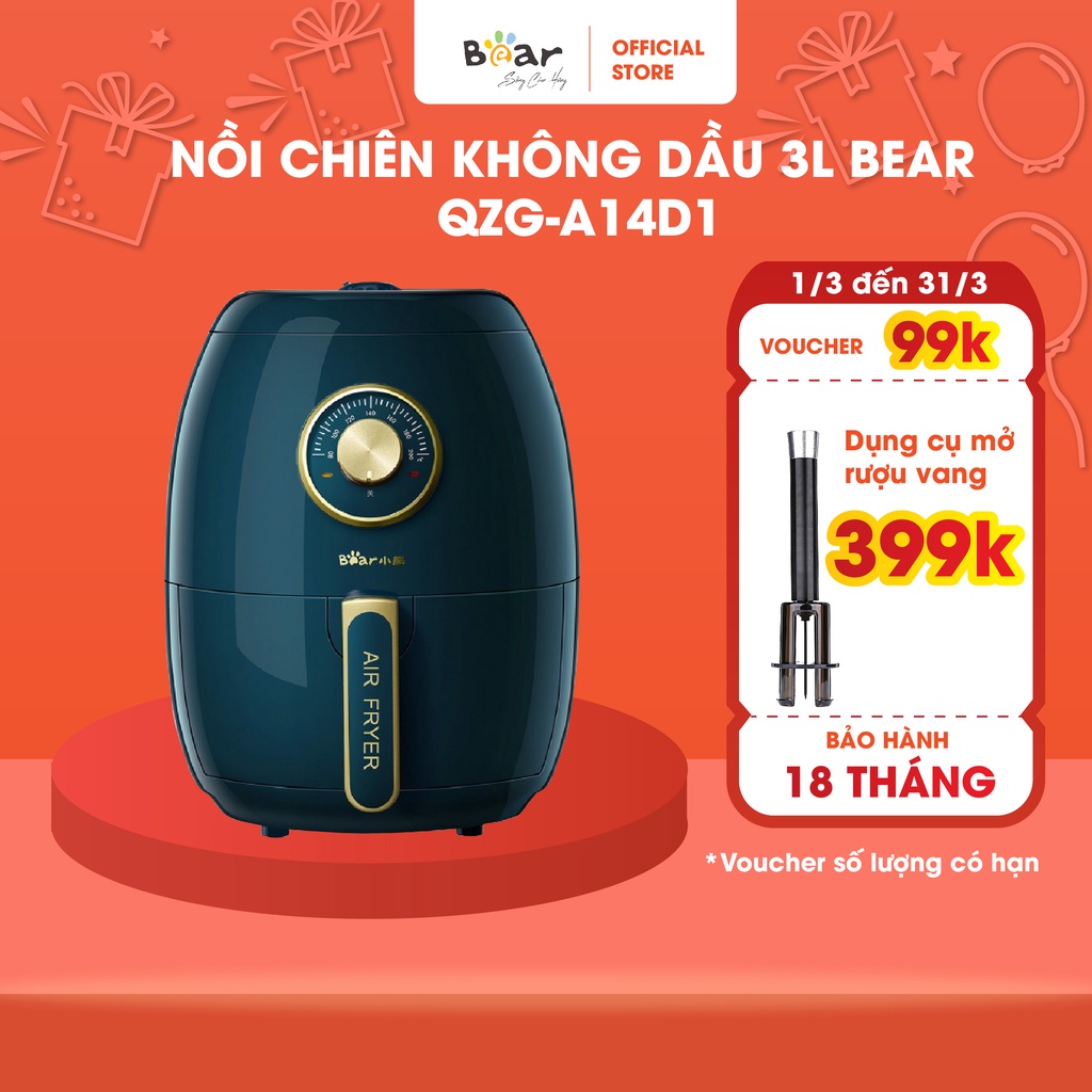 Giới thiệu Nồi chiên không dầu Bear 3.6L QZG-A14D1 Lòng nồi thép không rỉ phủ chống dính - Bảo hành 18 tháng