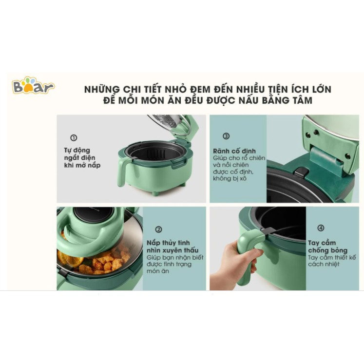 Giới thiệu [Mã ELHADEV giảm 4% đơn 300K] Nồi chiên không dầu BEAR QZG-B11D2 5L, NINE SHIELD chính hãng bảo hành 1 năm